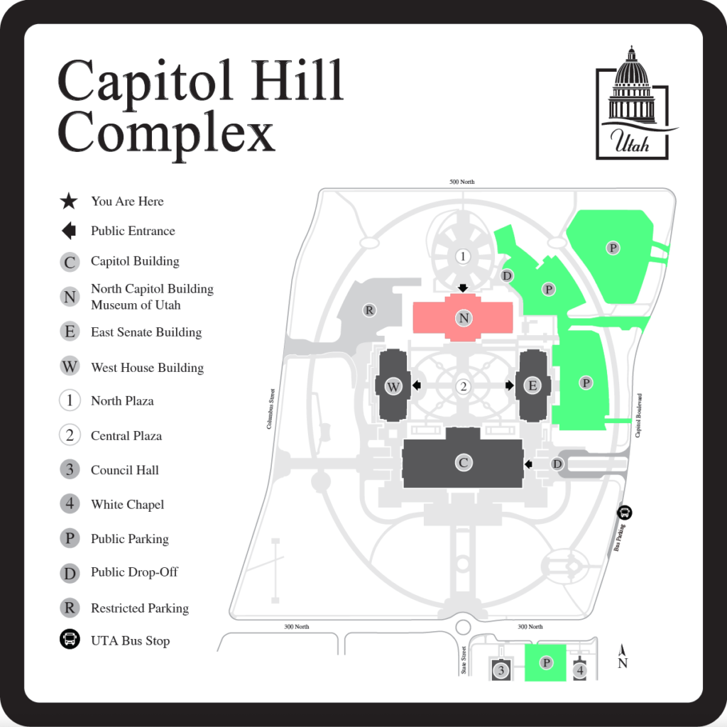 UTA bus route 200 offers service to the State Capitol. Learn more at UTA’s website.